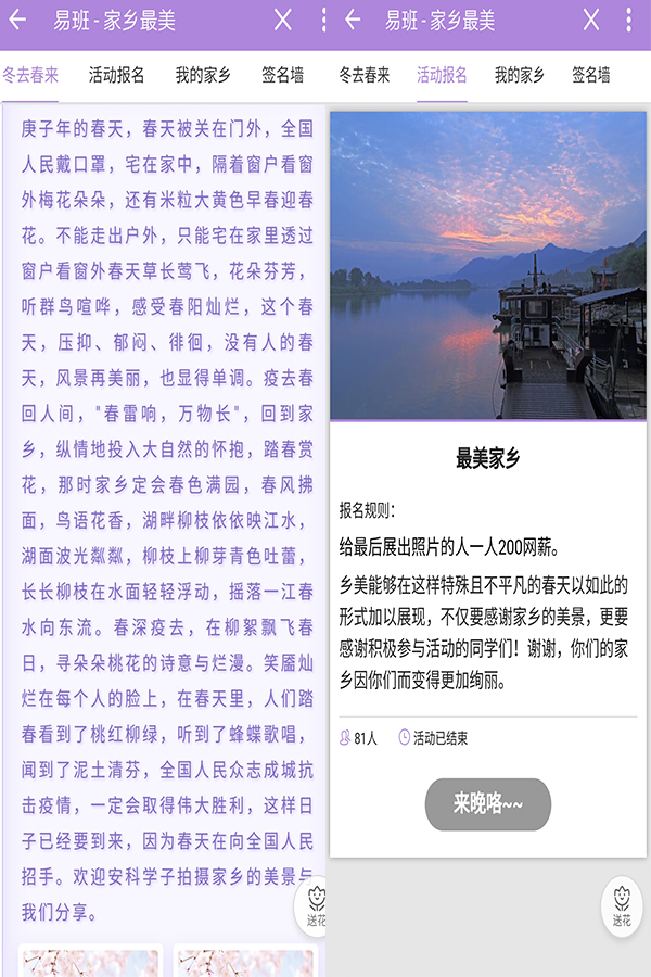 为激发学生了解家乡人文地理的热情,丰富学生的课余文化生活。4月13日-4月18日,信息与网络工程学院举办“家乡美”易班线上活动,本次活动面向学院全体学生。