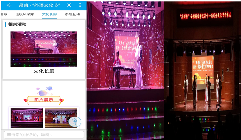 打开易班应用“文化长廊”,每一张图片仿佛都会说话,汉服风情、舞蹈风韵、茶艺文化、话剧表演、课堂学习、课后游戏等,每一张图片都记录了在校学习生活的丰富和美好,且每个活动的都有自己的独特之处,将所有的活动特色汇合在一起,创造了这独一无二的外语文化长廊。