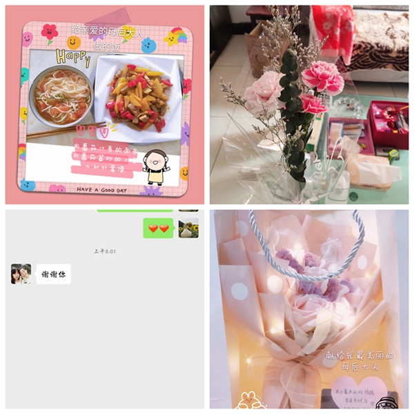 为迎接母亲节这个具有非凡意义的日子。动物科学学院学子提前谋划精心准备,在母亲节这一天,为妈妈送上了最真诚的祝福与祈愿。他们为世界上最伟大的母亲做了一餐饭,送了一束鲜花,给妈妈洗了一次脚,给妈妈洗头,诵读了一篇文章……他们为母亲做的这一切,深深表达了母亲与孩子之间最诚挚的爱。