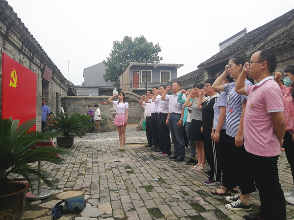 在参观结束后,怀着对革命烈士的深切缅怀和无限敬仰,全体党员干部面对党旗,高举右拳,一起重温入党誓词,郑重宣誓。铿锵有力的誓言表达了党员干部们坚定不移听党话、跟党走的政治信念。
