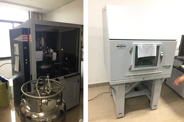 在南京大学分析测试中心,汪徐春一行在南京大学配位化学研究所、配位化学国家重点实验室孙为银教授的引导下系统考察了该校相关大型仪器设备,认真听取了实验技术人员对最新型布鲁克单晶衍射仪、场发射扫描电子显微镜、高分辨透射电子显微镜、原子力显微镜的详细介绍,并和工程师深入讨论了相关仪器购买、安装操作要点、人员技术培训以及对标国家行业检测标准等问题。