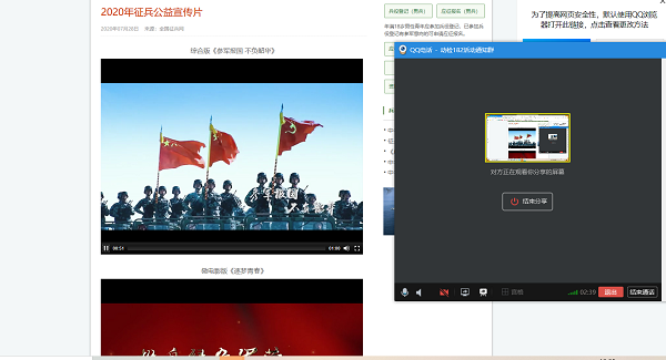 根据学校通知精神要求,动物科学学院组织学生收看2020征兵宣传片。学院以班级为单位组织学生通过个人或集体方式收看以“青春追梦”为主题宣传片《参军报国 不负韶华》和微电影《逐梦青春》。