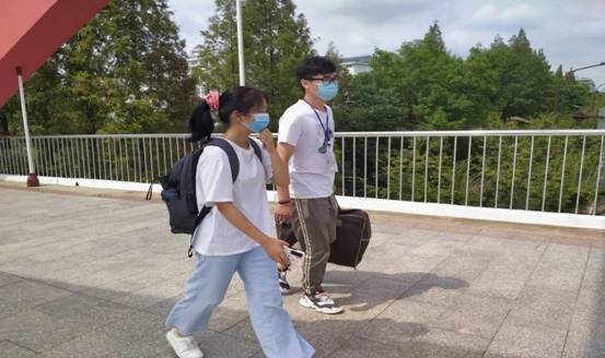 送新生回宿舍的路上,志愿者们耐心回答新生提出的各种问题,并向新生介绍学校以及学院相关情况。