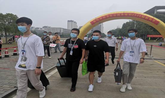 热心的志愿者们个个精神饱满,口罩和工作证佩戴整齐,带领新生和家长来到报到地点,井然有序的给新生解说和指引。