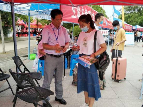 学院老师也加入迎新队伍,在报道现场帮助新生解决困难,同时亲力亲为帮新生搬运行李,与新生进行友好的交谈。
