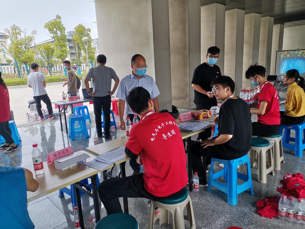 电气学院的全体辅导员坚持在迎新工作的第一线,分别在南门防疫检测通道、报到现场、学费缴纳处等地方,实时指导迎新工作进展情况,让新生感受到家的温馨。