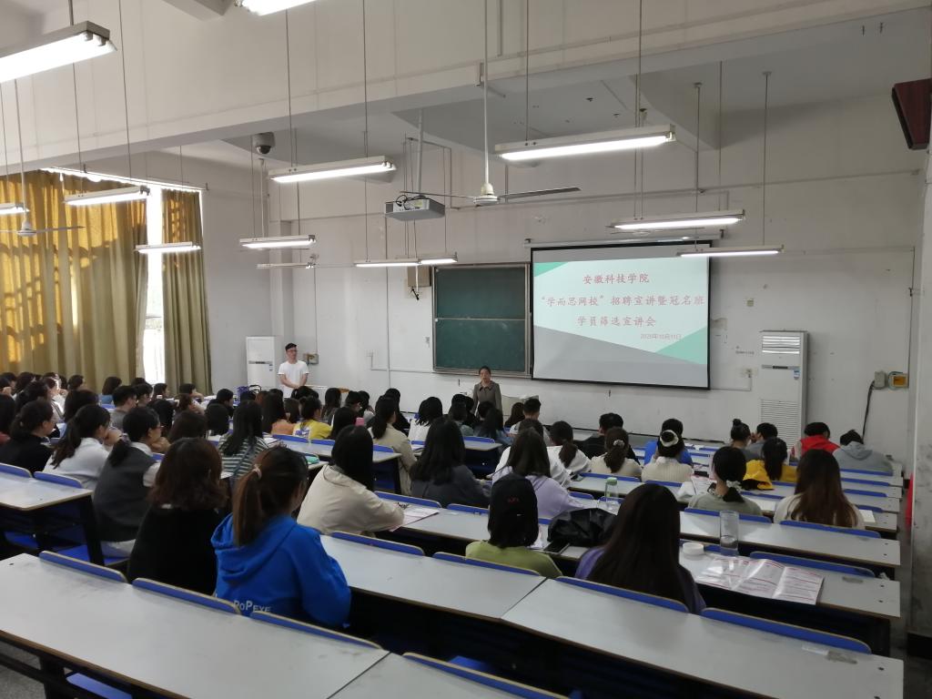 为帮助同学们提前了解在线教育行业的发展现状和未来职业能力需要,加深对教育行业的认识。外国语学院于10月11日下午15点在求A106教室举行了开云线上官网_开云(中国)“学而思网校”招聘宣讲暨冠名班学员筛选宣讲会,特邀中国好未来教育旗下“学而思网校”合肥校区安徽地区负责人武嘉豪经理做宣讲,招聘经理蔺一峰、张旭、张译丹参会,学院党总支书记蔡为青、专职辅导员宋兵兵出席本次宣讲会,学院17、18、19、20级部分同学参会,本次宣讲会由宋兵兵主持。