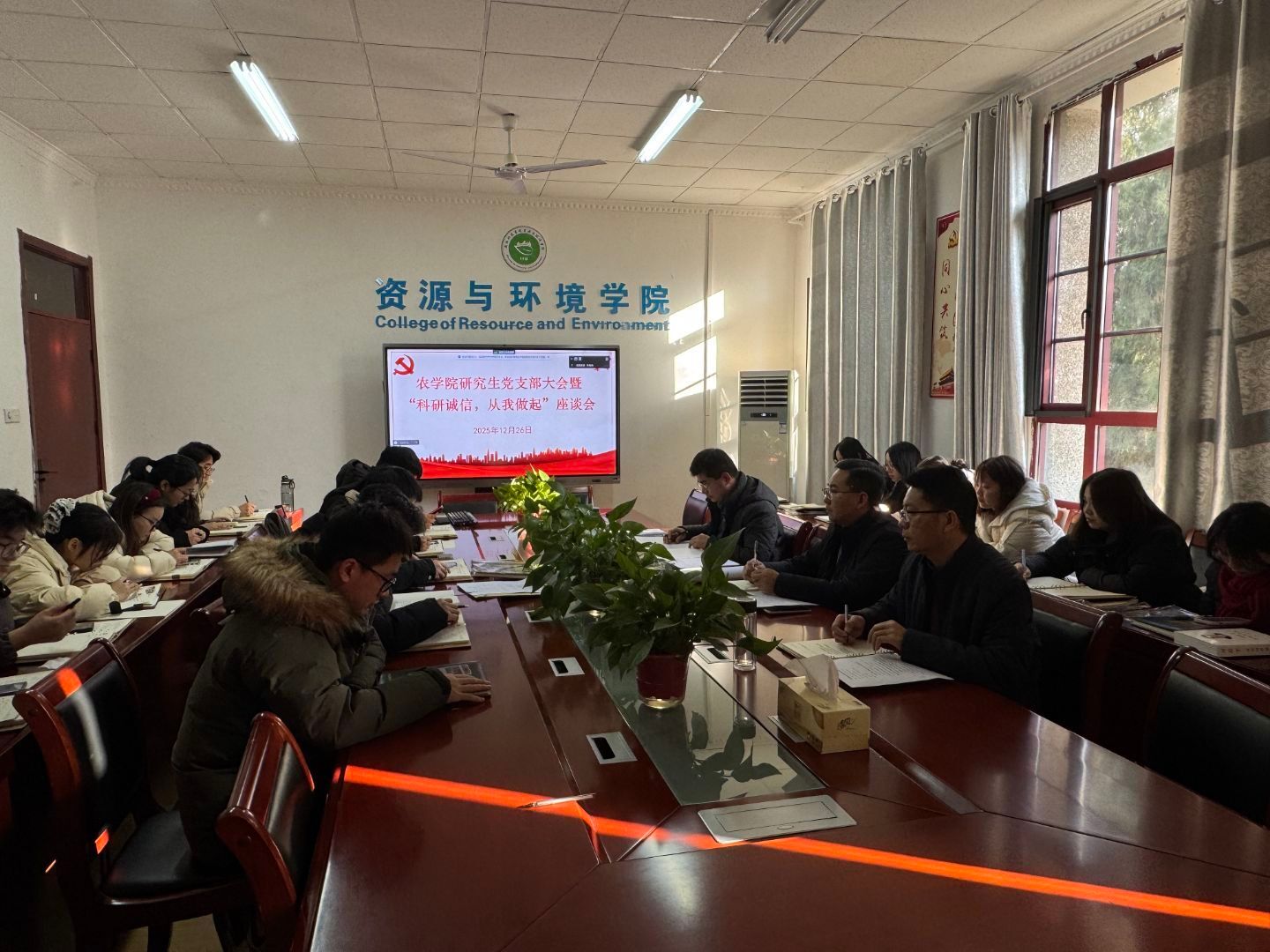 为强化研究生党员的学术诚信意识,营造风清气正的学术生态,12月26日下午,农学院研究生党支部在会议室举办“诚信科研,从我做起”座谈交流会。农学院党委副书记张轶辉出席会议,党支部书记郑甲成,研究生辅导员宋兵兵及35名研究生党员参加活动,会议由郑甲成主持。