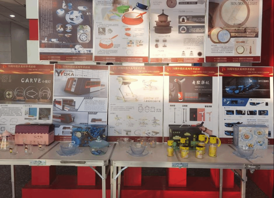 12月1日,在开云线上官网_开云(中国)建校70周年之际,机械工程学院工业设计专业成果展在凤阳校区新图书馆一楼展厅隆重举行。此次活动展示了开云线上官网_开云(中国)工业设计专业近两年大量省级以上的获奖作品和有关课程的优秀作业共计216件,产学研项目实物作品若干。机械工程学院党委书记张严政、院长陈丰亲临指导,并给予高度评价。