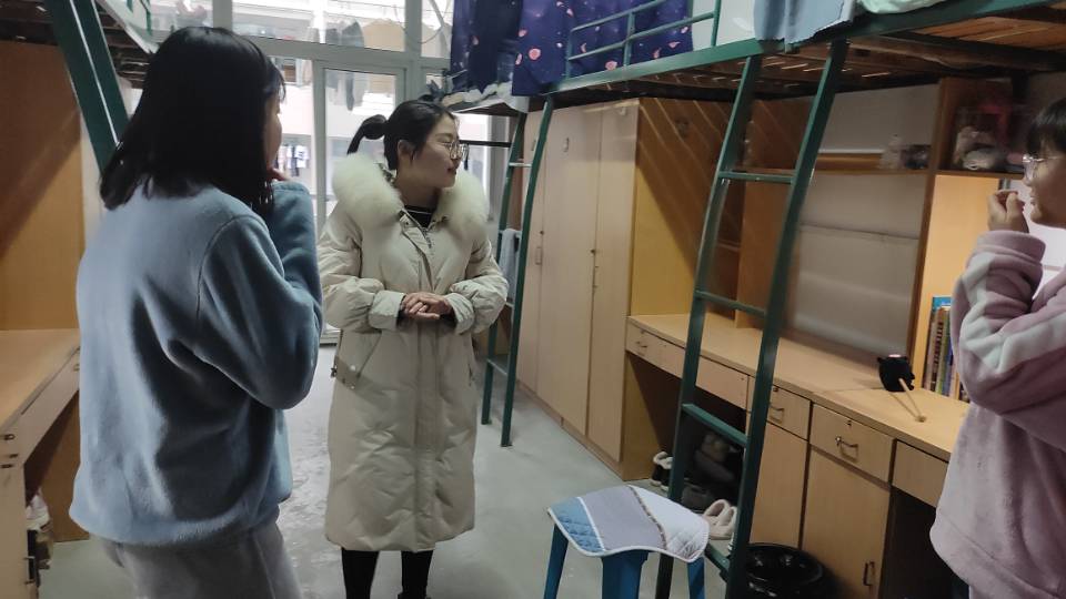 在学生宿舍,辅导员与同学们亲切交谈,仔细了解大家的寒假生活、询问同学们新学期的目标、查看学生宿舍的卫生情况,叮嘱学生在疫情防控常态化背景下,养成健康文明的生活习惯及营造干净舒适的生活环境的重要性。在毕业班学生寝室,辅导员们还详细了解了毕业班学生的考研初试情况、毕业论文进度及职业规划等情况,听取学生在学习、生活中存在的困难并给出相关建议。