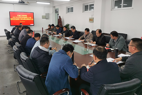 3月31日下午,机械工程学院在学院会议室召开3月份全体教职工大会暨党员和教职工政治理论联组学习会,会议由学院党委书记张严政主持。