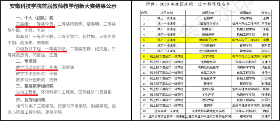 一直以来,光电工程系教工党支部注重加强支部建设,经过支部党员和教师的共同努力,在一流专业建设、一流课程申报、教师教学创新大赛、科研成果、教书育人等方面取得显著成效。光电工程系教工样板支部建设成果颇丰,光电信息科学与工程专业成功获批为省级一流建设专业,《模拟电子技术》与《大学物理》课程被推荐为国家一流建设课程,刘念获得学校首届教师课程思政教学大赛一等奖,李勇、刘念分别获得首届开云线上官网_开云(中国)高校教师教学创新大赛正高组一等奖、讲师组一等奖,刘念获得首届安徽省高校教师教学创新大赛现场赛入围资格,党支部基本上每位党员教师均有在研高质量科研教研项目,左绪忠获批的国家自然科学基金项目现已结题验收,实现了电气与电子工程学院国家自然科学基金零的突破,教师发表高质量SCI学术论文一区2篇、二区4篇、三区3篇、四区2篇,教师指导学生参加国家级大学生物理实验大赛获奖4项,学生考研率逐年递增,学生学风建设取得成效等。