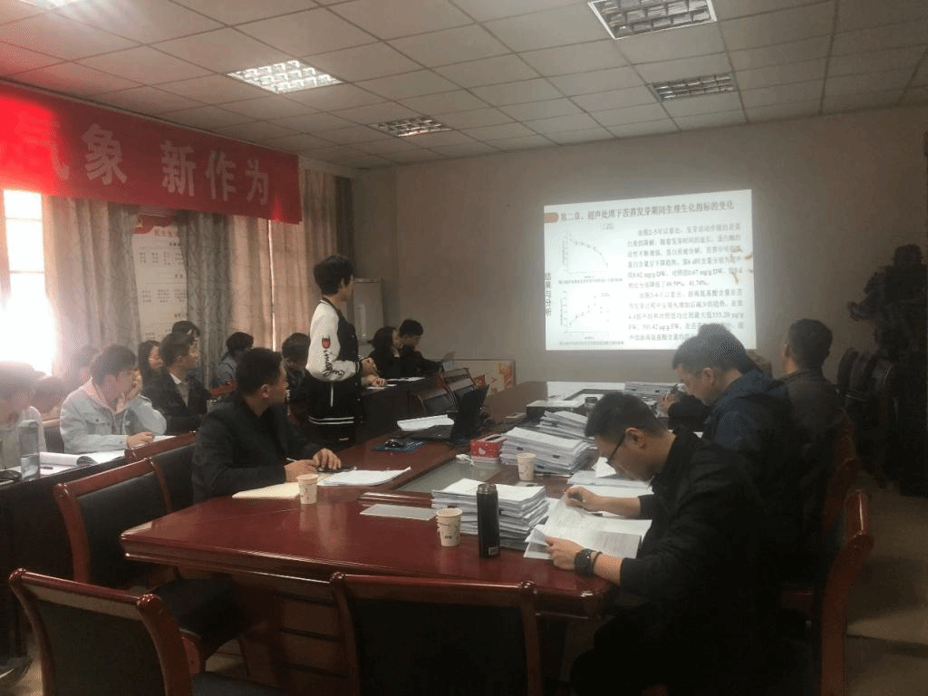 为检验硕士研究生学位论文水平,把控学位论文质量。4月11日,食品工程学院在学院会议室举行2021届硕士研究生学位论文预答辩。答辩会由答辩组长、安徽农业大学教授杜先锋主持,答辩委员由上海丰原普乐思食品有限公司余诗庆高级工程师、食品工程学院李先保教授、翟立公副教授和杨剑婷副教授组成,答辩秘书由彭钢博士担任,部分导师和2021届全体硕士生研究生参加答辩会。