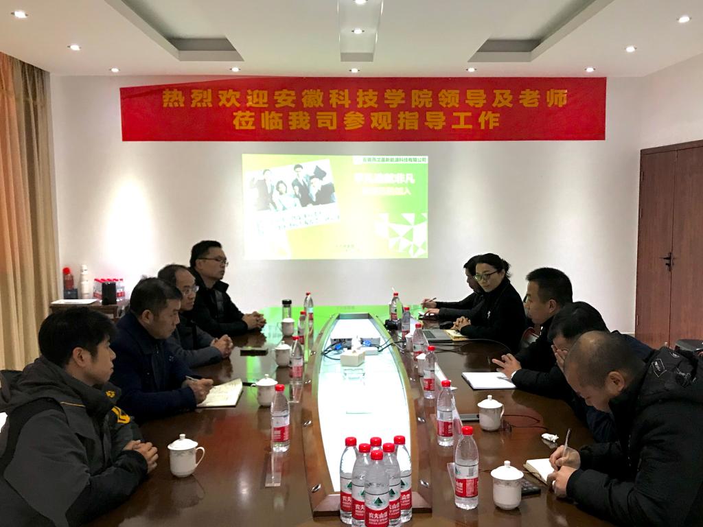 在安徽燕龙基新能源科技有限公司,在人力资源部经理王宏智的引导下,黄树桥一行参观了企业的现代化厂房和生产车间,听取了生产总监靳艳标对公司生产规模、经营现状及发展规划的介绍。黄树桥详细介绍了化材学院师资队伍情况和毕业生情况,就企业最为关心的人才招聘问题与企方人员进行了深入有效的沟通交流,同时还与企方就下一步安排毕业生实习、开展校企产学研合作等问题进行了深入探讨,并就联合建设实验室、开展毕业生实习、技术攻关、联合申报课题等达成了初步合作意向。