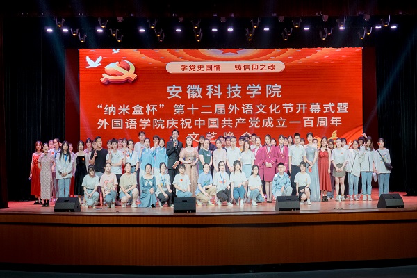 5月30日晚,开云线上官网_开云(中国)“纳米盒杯”第十二届外语文化节开幕式暨庆祝中国共产党成立一百周年文艺晚会在大学生活动中心举行。校党委委员、宣传(统战)部部长卫胜,国际交流与合作处处长、港澳台事务办公室主任刘东楼,教务处处长、创新创业学院院长俞浩,党委学工部部长、学生处处长何永勇,校团委书记黄立义,招生与就业工作处副处长、招生办公室副主任、校友工作办公室主任何晓冬,外国语学院院长陈德用、党委书记蔡为青、副院长刘萍、党委副书记张海亮出席开幕式。开幕式由蔡为青主持。
