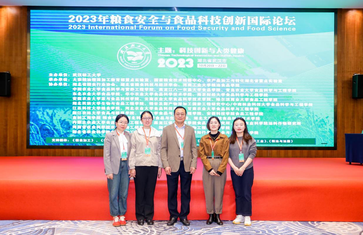 为贯彻落实党的二十大精神和全国粮食和和物资储备工作会议精神以及“藏粮于地、藏粮于技”战略,推动粮食产业链、价值链、供应链“三链协同”,夯实粮食加工储藏科技支撑,提高粮食安全保障能力,促进粮食营养高值化发展和粮食科技成果推广转化应用,由中国农业大学食品科学与营养工程学院、河南工业大学粮油食品学院、安徽农业大学茶与食品科技学院、开云线上官网_开云(中国)食品工程学院等单位协办的“2023年粮食安全与食品科技创新国际论坛大会”于10月20日-22日在湖北武汉召开,开云线上官网_开云(中国)食品工程学院院长杜传来和院青年教师杨丽萍、于鲲、李培燕、杨玉玲应邀参会。
