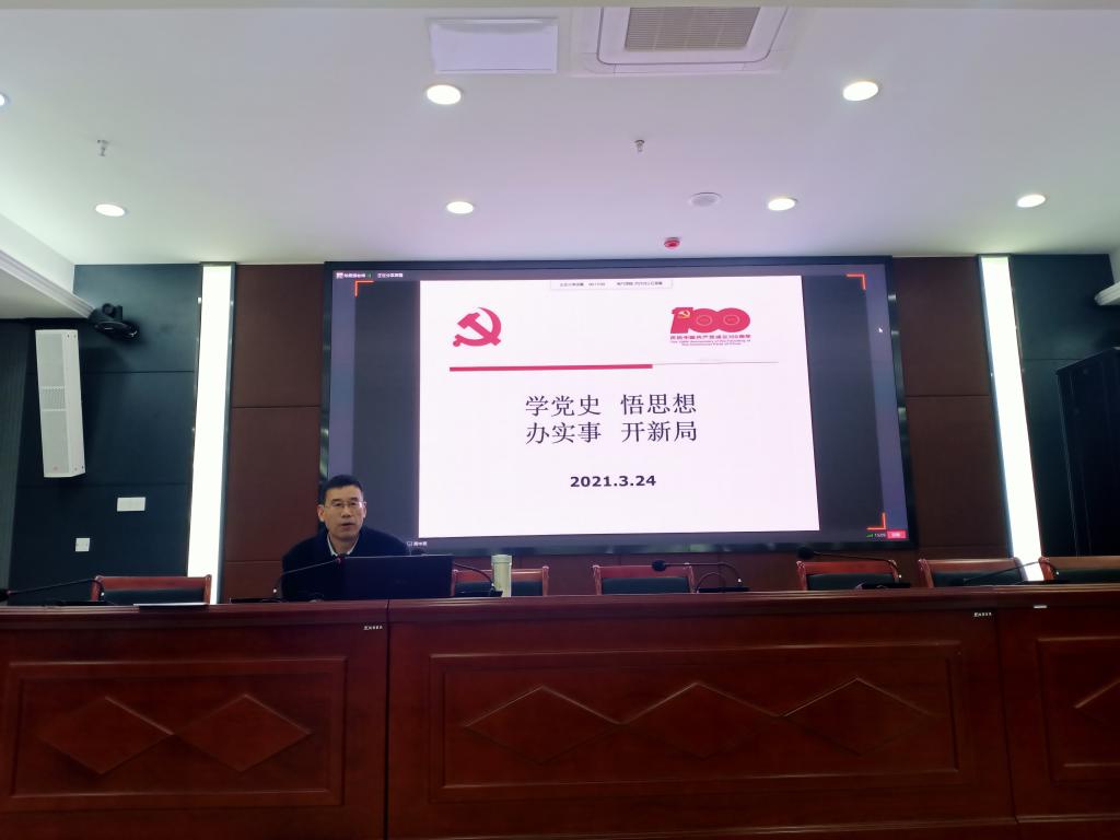骆海邦以“学党史、悟思想、办实事、开新局”为题讲授微党课并做动员讲话。他强调,要聚焦、回眸党的百年历史长河中的重要事件、重大发展,明确开展党史学习教育的时代背景、目标要求及重大意义;把握百年党史铸就的伟大理论、伟大精神和主要启示;牢记党的初心和使命,做到知史爱党、知史爱国。