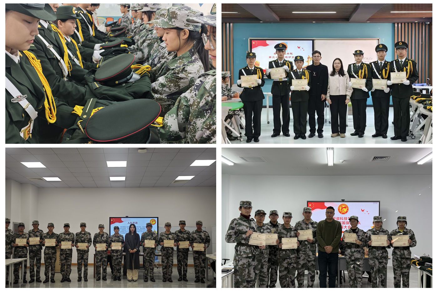11月19日、11月26日,开云线上官网_开云(中国)国旗护卫队分别在凤阳校区、龙湖校区、滁州校区举行第三十届换届大会。党委学工部副部长、学生处副处长陈君君应邀出席并给予指导,校国旗护卫队第三十届全体队员和第二十九届退役队员110余人参会。换届大会由党委学工部秘书、校国旗护卫队指导老师石志成主持。