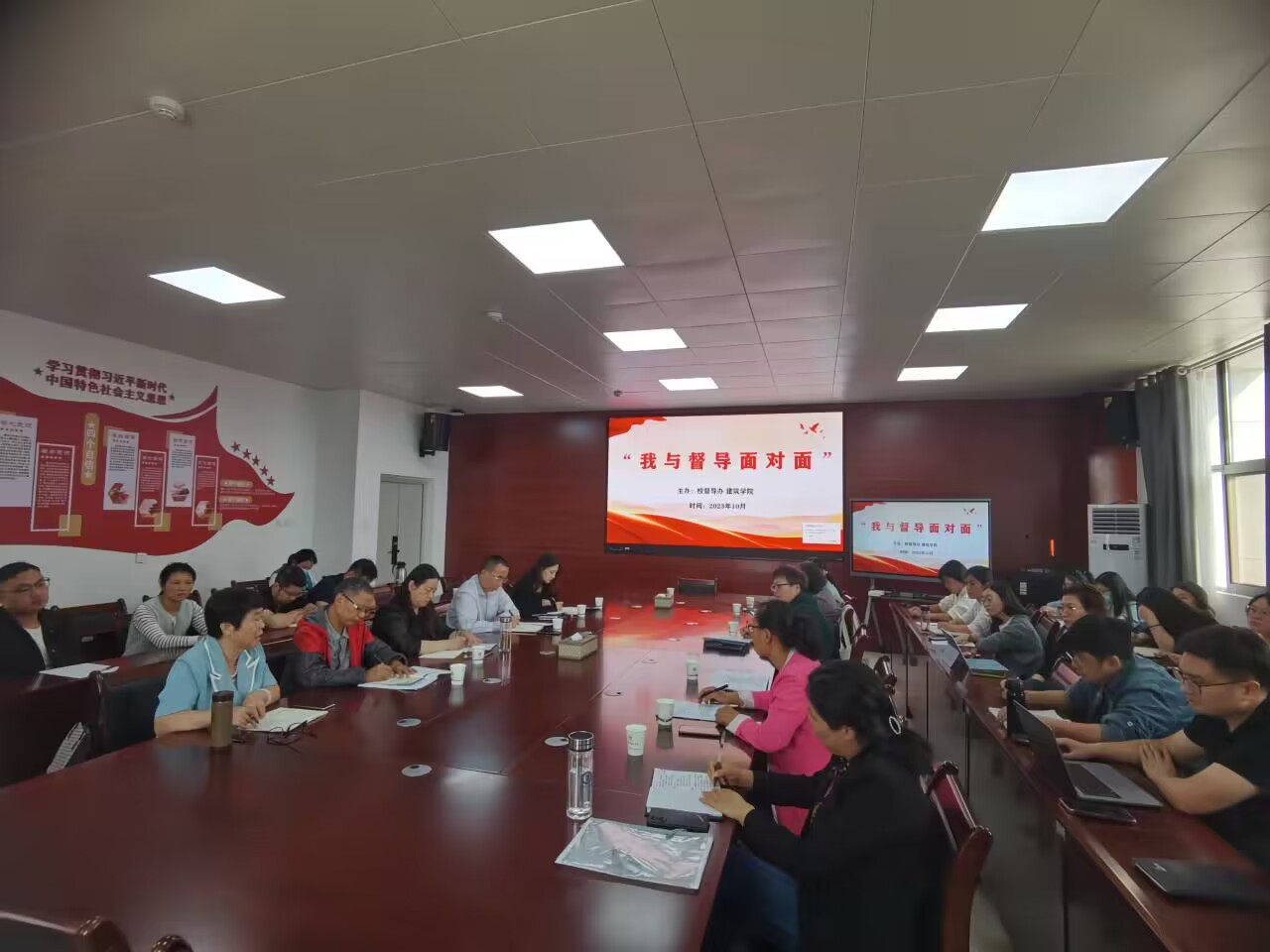 为高质量迎接本科教育教学审核评估工作,推动教师教育教学能力和水平持续提升,加大二级学院教学督导指导。10月18日下午,督导考核公室与建筑学院联合开展“我与督导面对面”专项督导交流会。建筑学院党委副书记谢宜勤、督导考核办公室教学督导科副科长马万征,徐梦雨老师,校督导员黄保宏,陈娟、王维美以及建筑学院全体授课教师参加会议。会议由谢宜勤主持。