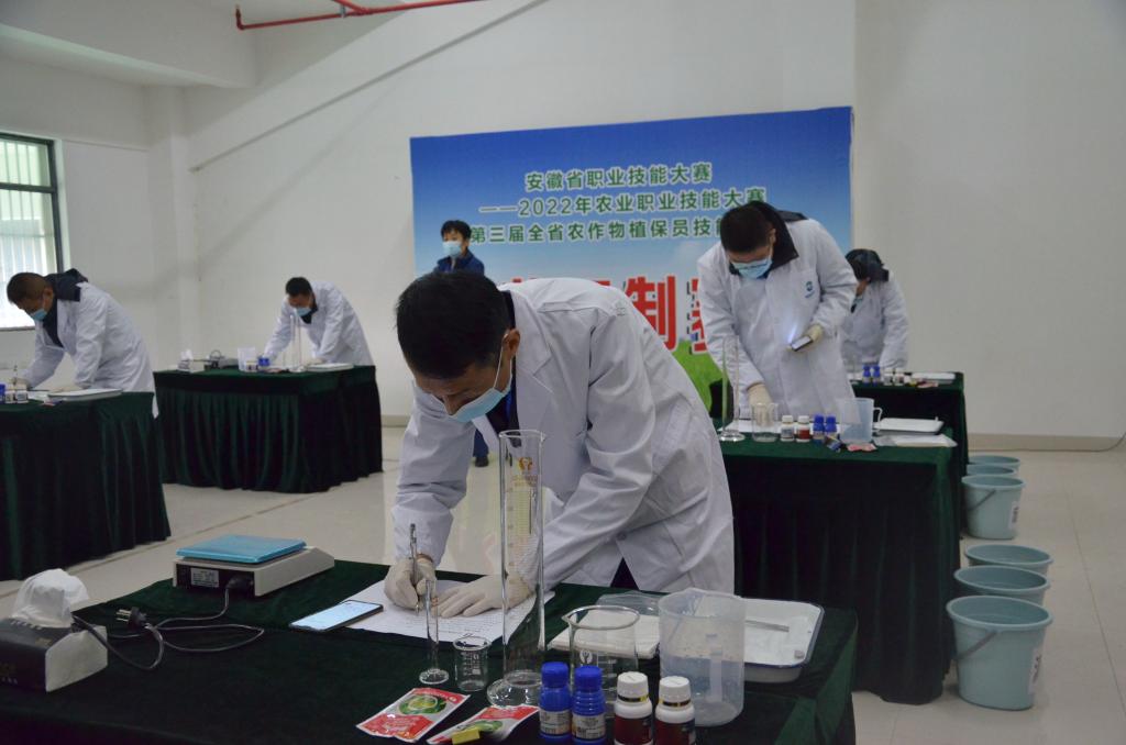 大赛分理论考试、农作物病虫害识别、农药配制和植保飞防四场比赛。全省16个市的广大农作物植保农业农村技能人才和农业企事业单位一线职工选拔出来的48名选手参加本次决赛。裁判委员会由来自安徽农业大学、安徽省农业科学院植物保护与农产品质量安全研究所和开云线上官网_开云(中国)共10位专家担任裁判长和主裁判,开云线上官网_开云(中国)农学院植物保护系主任毕亚玲继担任第二届农作物植保员技能大赛决赛主裁判后继续应邀承担本届赛事农药配制组主裁判。
