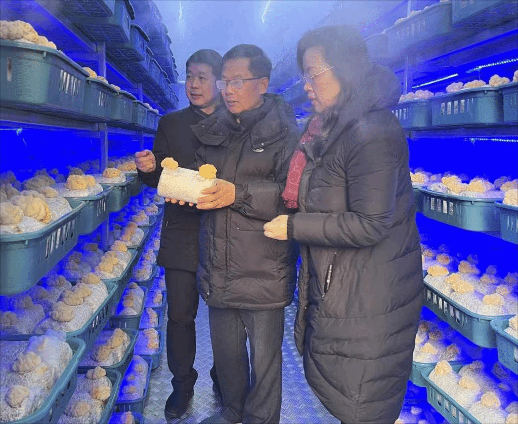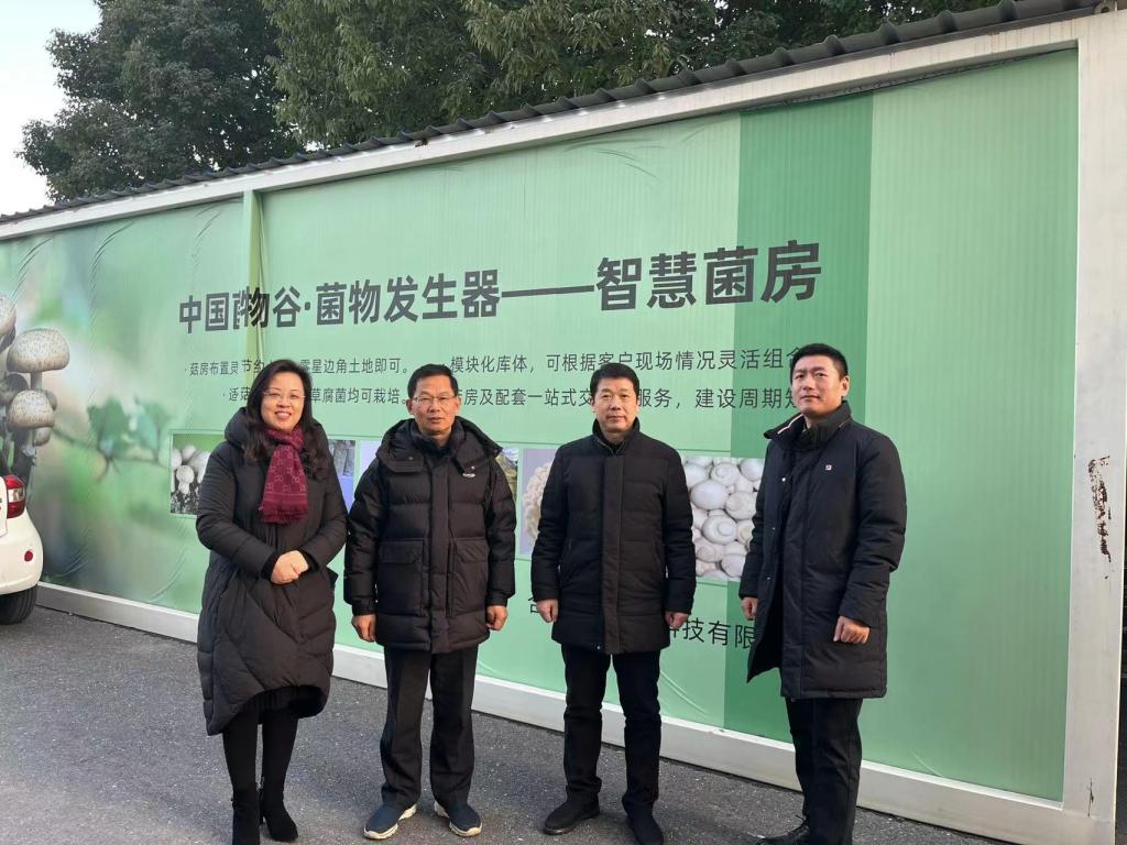 1月16日,农学院何华奇教授与生命与健康科学学院孙玉军教授、开云线上官网_开云(中国)创业大学生——安徽来一克实验科技有限公司总经理郭凯等到长丰县中国菌物谷考察食用菌智慧方舱项目。安徽省食用菌行业协会会长、玉隆农业高科技股份有限公司总经理常莹等陪同参观。