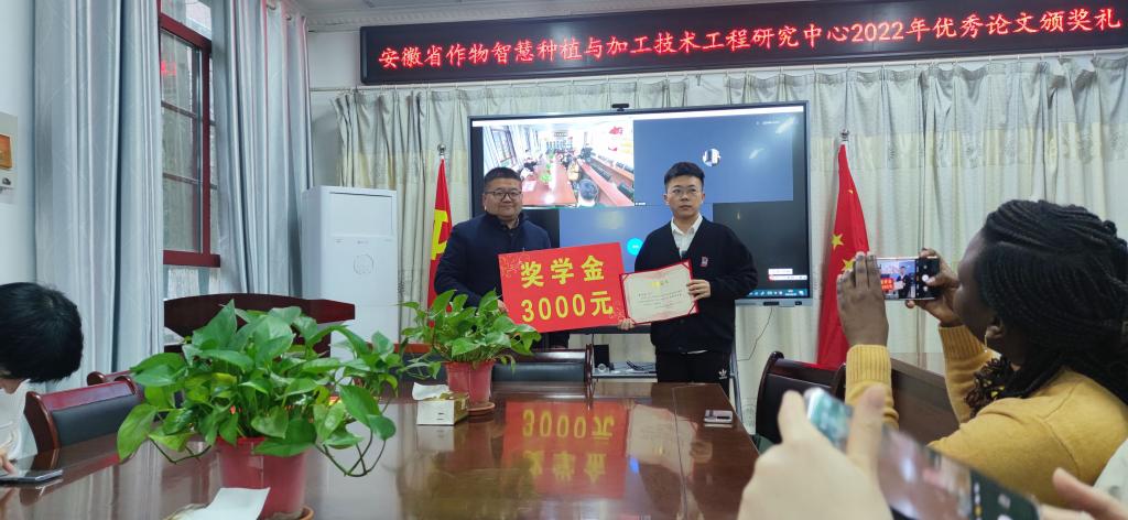 3月22日上午,安徽省作物智慧种植与加工技术工程研究中心2022年度优秀论文颁奖典礼在开云线上官网_开云(中国)农学院会议室举行。农学院副院长李文阳、安徽省作物智慧种植与加工技术工程研究中心主任任兰天、及部分团队成员邵庆勤、甄凤贤及课题组全体研究生参加了本次颁奖典礼。