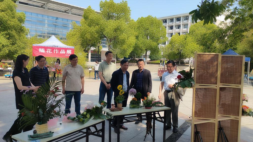为深入学习贯彻习近平新时代中国特色社会主义思想和党的二十大精神,打造精品社团活动,加强文化自信自强,同时厚植爱农情怀,练就兴农本领,在深入开展学习贯彻习近平新时代中国特色社会主义思想主题教育之际,5月14日,校团委和农学院在凤阳校区西区小广场成功举办花艺(插花和压花)作品展。党委副书记、院长李震在党委学工部部长、学生处处长黄立义,教务处副处长高青海以及农学院党政领导的陪同下,亲临作品展现场观摩指导。