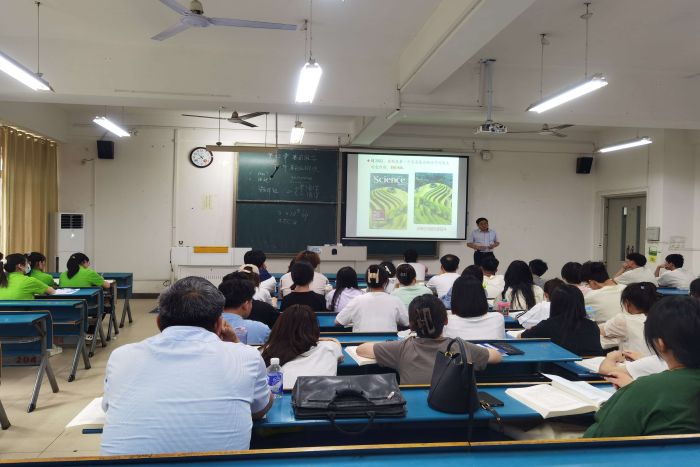 本次示范公开课为农学系黄先忠教授主讲的《遗传学》课程中“第十三章基因组学”章节内容。黄老师教学态度端正、准备充分、内容熟练、课件制作精美、授课精神饱满、逻辑性强,系统介绍了基因组及基因组学的概念、发展历程以及研究目标等,并重点讲述了人类基因组。通过解析人类基因组计划的启动、完成以及意义,激励同学们要“志存高远”和“读万卷书、行万里路”,提升了同学们学习的热情。