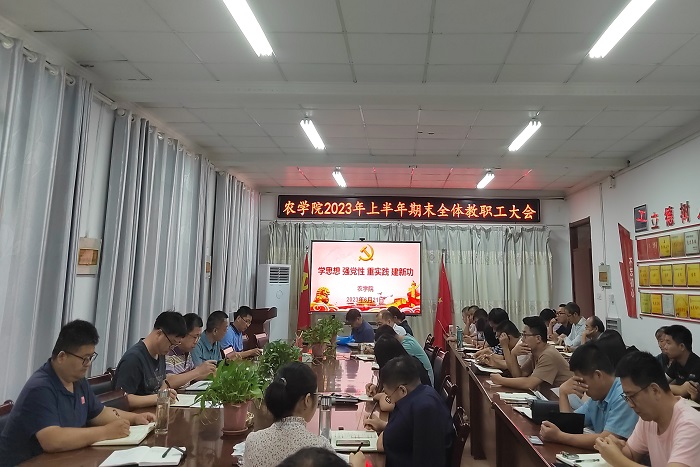 6月21日下午,农学院在学院会议室召开期末全体教职工大会,安排部署学院期末及暑期各项重点工作,会议由农学院党委副书记、院长崔广荣主持。