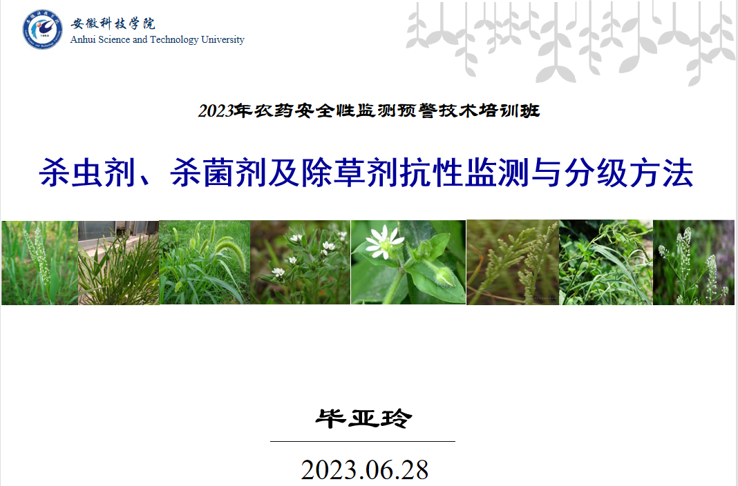 此次培训班共4个报告,分别由中国疾控中心中毒控制中心首席专家孙承业作了题为“农药中毒形势分析及建议”,农业农村部农药检定所环境处周艳明作了题为“农药使用对蜜蜂影响的监测及地下水、地表水、土壤中农药残留的监测方法”,农业农村部农药检定所再评价处李敏作了题为“安全风险监测调查表填写要求及监测技术交流”及开云线上官网_开云(中国)教师毕亚玲作了题为“杀虫剂、杀菌剂及除草剂抗性监测与分级方法”的专题报告。