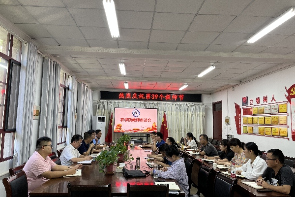 在第39个教师节来临之际,9月6日下午,农学院在学院会议室召开教师代表座谈会,学院党政领导、工会主席、中老年教师代表、近三年新进教师参加,座谈会由学院党委委员、副院长舒英杰主持。