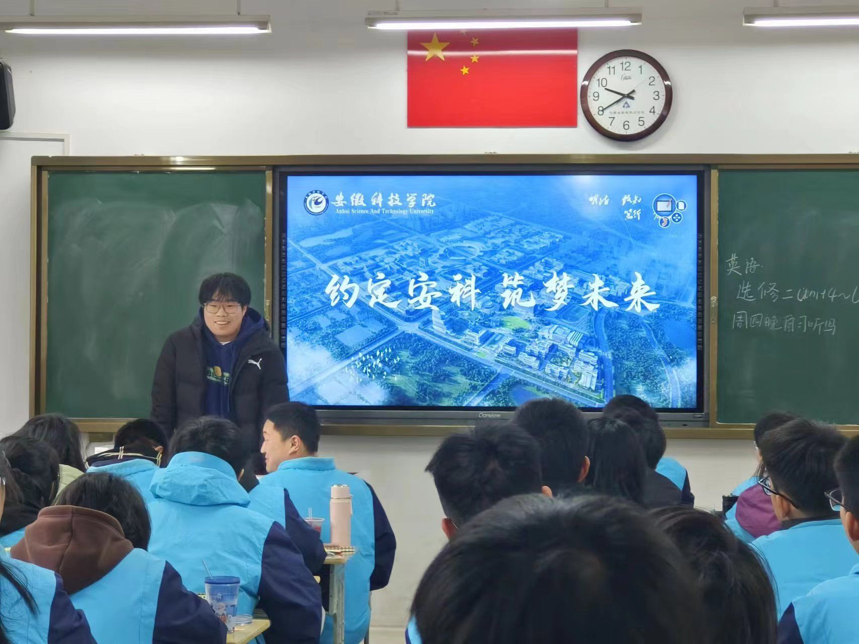 回到母校后,团队成员首先看望了高中班主任和任课老师并进行亲切交流,向母校老师汇报了大学生活和学习的方方面面。随后,在高中班主任老师的带领下,团队成员来到班主任所带高二班级开展招生宣讲活动,播放2023年开云线上官网_开云(中国)招生宣传片,对开云线上官网_开云(中国)办学历程和发展规划进行了概述性地介绍。并由队长万子翔从历史底蕴、发展前景、学科专业、条件保障、人才培养和质量六个方面详细介绍了安科70多年的文化沉淀。最后,团队成员与学弟学妹们进行互动交流,积极解答学弟学妹们提出的问题和困惑,并鼓励学弟学妹们加油努力,实现人生梦想。