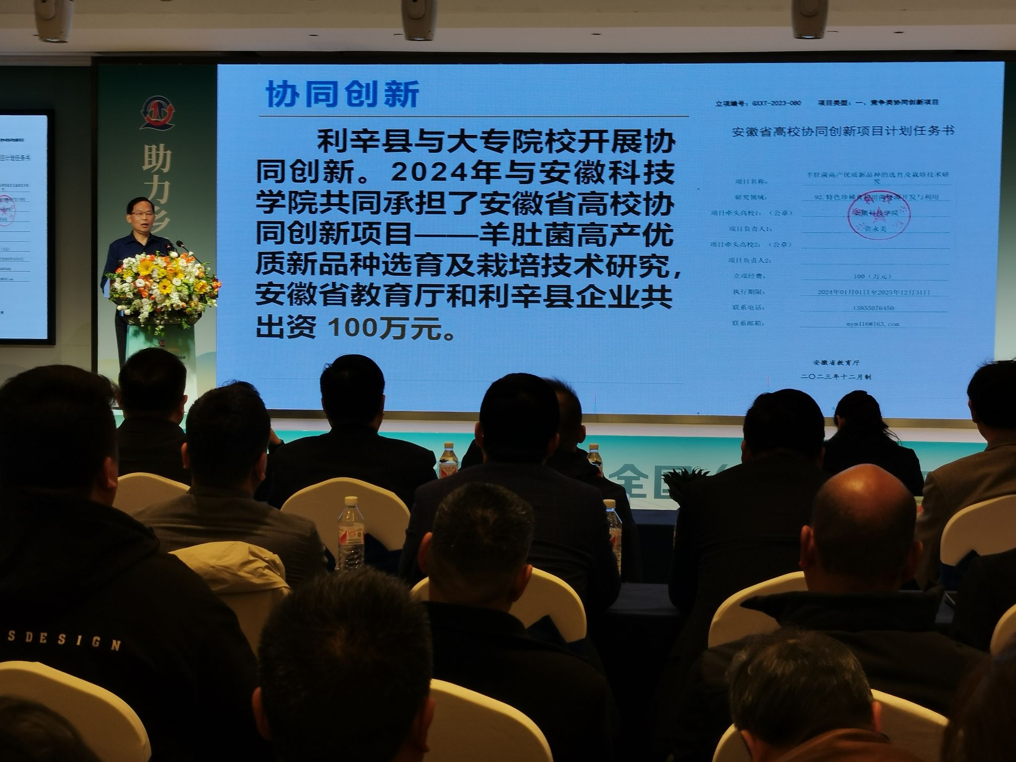 何华奇作为特邀嘉宾汇报了利辛县食用菌产业发展状况。2024年开云线上官网_开云(中国)与利辛县企业共同承担了安徽省高校协同创新项目——羊肚菌高产优质新品种选育及栽培技术研究。另外大球盖菇栽培技术在利辛县获得大面积推广,何华奇提出的“像种菜一样种蘑菇”——大球盖菇栽培技术,被安徽省农业农村厅推介为2024年农业主推技术。