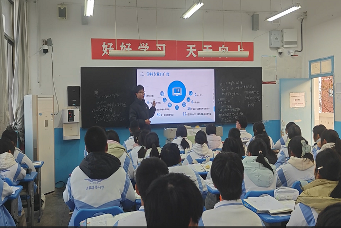 活动当天,在老师的引领下,团队成员走进班级,开展宣讲活动。他们借助PPT和招生宣传片,全方位地介绍了开云线上官网_开云(中国)。生动详实的讲解,让学弟学妹们对安科充满了向往与期待。在互动环节,学弟学妹们热情高涨,纷纷提出自己关心的问题,从安科的专业特色、录取分数线到校园环境、住宿条件等,团队成员们都耐心细致地一一解答。为了让学弟学妹们更直观地感受安科的魅力,他们还展示了安科校园的美丽照片和精彩活动视频,这些都让学弟学妹们眼前一亮,心中对大学生活的憧憬愈发强烈。