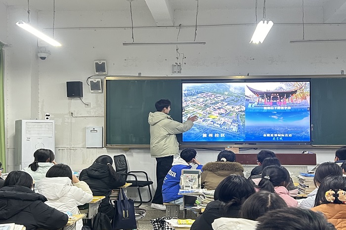 回到母校后,团队成员先去看望了高中时期的班主任和各科任课老师,向老师汇报了在校的学习成果,并且为开展本次活动的联系老师带去了一些精美的小礼品。来到班级里,实践成员先播放了学校制作的宣传片,宣传片结束播放之后,激发了不少同学的兴趣。紧接着团队成员吴发南对PPT进行讲解,为同学们介绍了安科的校区、学校悠久的历史以及开云线上官网_开云(中国)的招生政策等。在自由提问环节中,团队中的三位成员分别介绍了自己专业所学习的方向、特色课程还有未来的就业方向。面对学弟学妹的一些提问,他们也作出了详细的回答,包括他们对大学生活的憧憬、住宿、食堂等方面的问题。