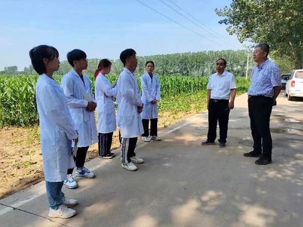 实习期间,实践团成员排管灌溉、施肥,开展玉米叶片面积和高度的测量,对田间玉米生长情况进行取样并对实验数据进行记录和处理等工作。7月18日,中国农科院李少昆研究员协同漯河市领导亲临舞阳县玉米示范基地查看科研情况。李少昆鼓励实践团成员继续发扬一不怕苦二不怕累的精神,开展科研实践,在实践中学本领、长才干。实践期间,实习团成员还参加了2022年漯河市玉米合理密植技术研讨及培训会。