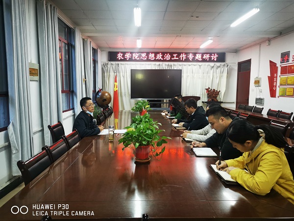 10月10日下午,农学院在学院会议室召开学生思想政治教育工作专题研讨会,回顾总结开学以来的学生工作,分析研判当前工作形势,专题研究思想政治教育工作。会议由农学院党委副书记张轶辉主持,全体专兼职辅导员参加会议。