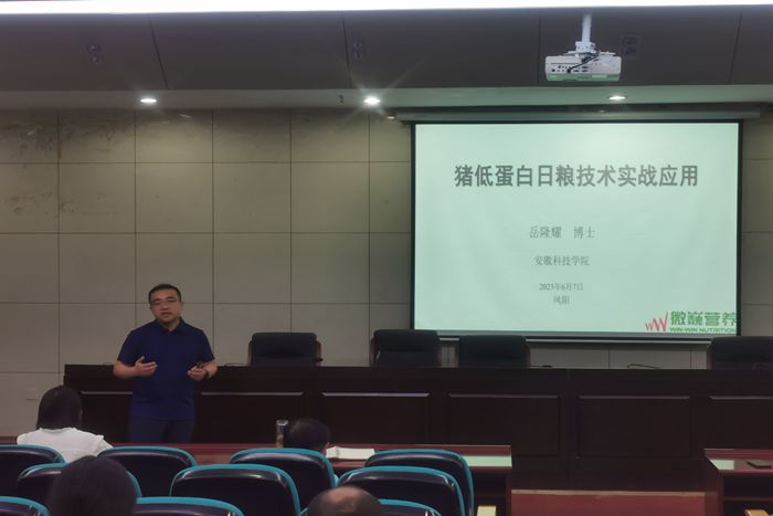 岳隆耀以“低蛋白日粮技术实战应用”为题,从低蛋白日粮技术形成的背景、发展、理论基础、应用实践中产生的问题和不断改进进行了阐述,介绍了低蛋白日粮技术在节省饲料成本、提高猪肠道健康、减少氮排放和环境污染、缓解蛋白资源进口依赖、促进氨基酸工业发展等领域的应用作了详细介绍。会后,岳博士为想要进入猪养殖和饲料行业学习、工作的研究生推荐了必备工具书目。