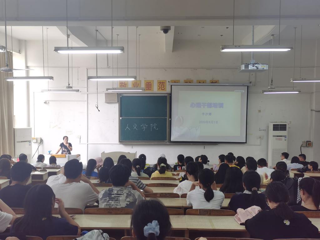 为有效减少疫情给学生带来的心理困扰,更好地开展新学期心理健康教育工作,9月1日上午,人文学院在求知楼A102举办心理干部培训会,17、18、19级各班心理委员及宿舍心理宣传员参加会议。会议由人文学院党总支秘书、分团委书记李沙娜主持。