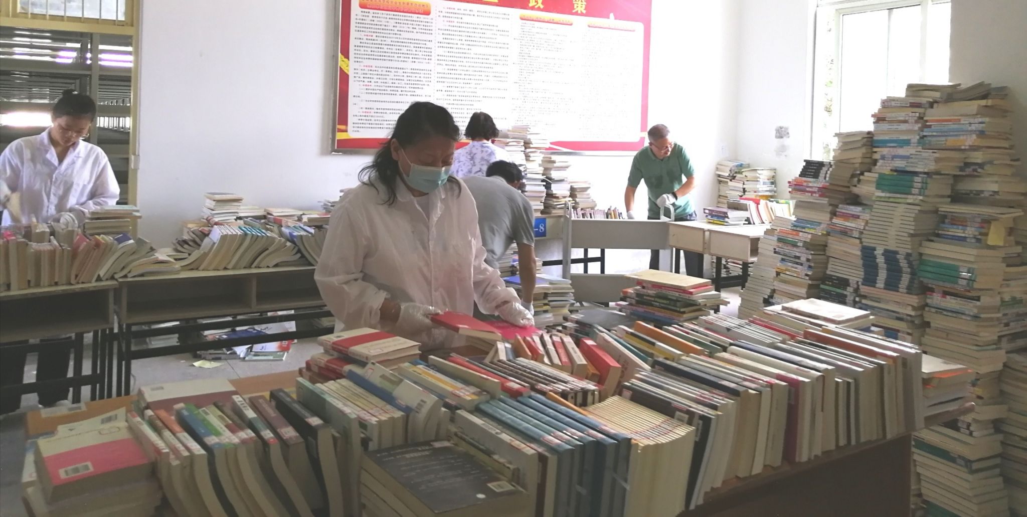 当前,图书馆正在紧锣密鼓的开展图书编排上架工作,党员活动室也作为了排书场所堆满了图书,在书堆中召开的支部换届工作,不仅是对党员们责任与担当的一次检验,更是体现了他们在困境中依旧坚持初心、牢记使命的坚定信念。