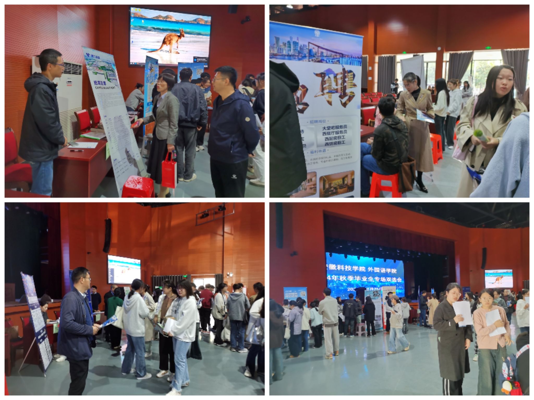 外国语学院在招聘会前做了大量筹备工作,对参加招聘会的企业资质进行了严格把关。本次招聘会吸引了34家企业,共带来岗位600余个,为2025届毕业生提供了多样化的就业选择。招聘会现场,学院党政领导与用人单位开展深入交流,探讨进一步合作意向;毕业生积极主动与用人单位沟通,了解各岗位需求和发展前景。外国语学院以及凤阳校区近千名毕业生参加了本次招聘会。