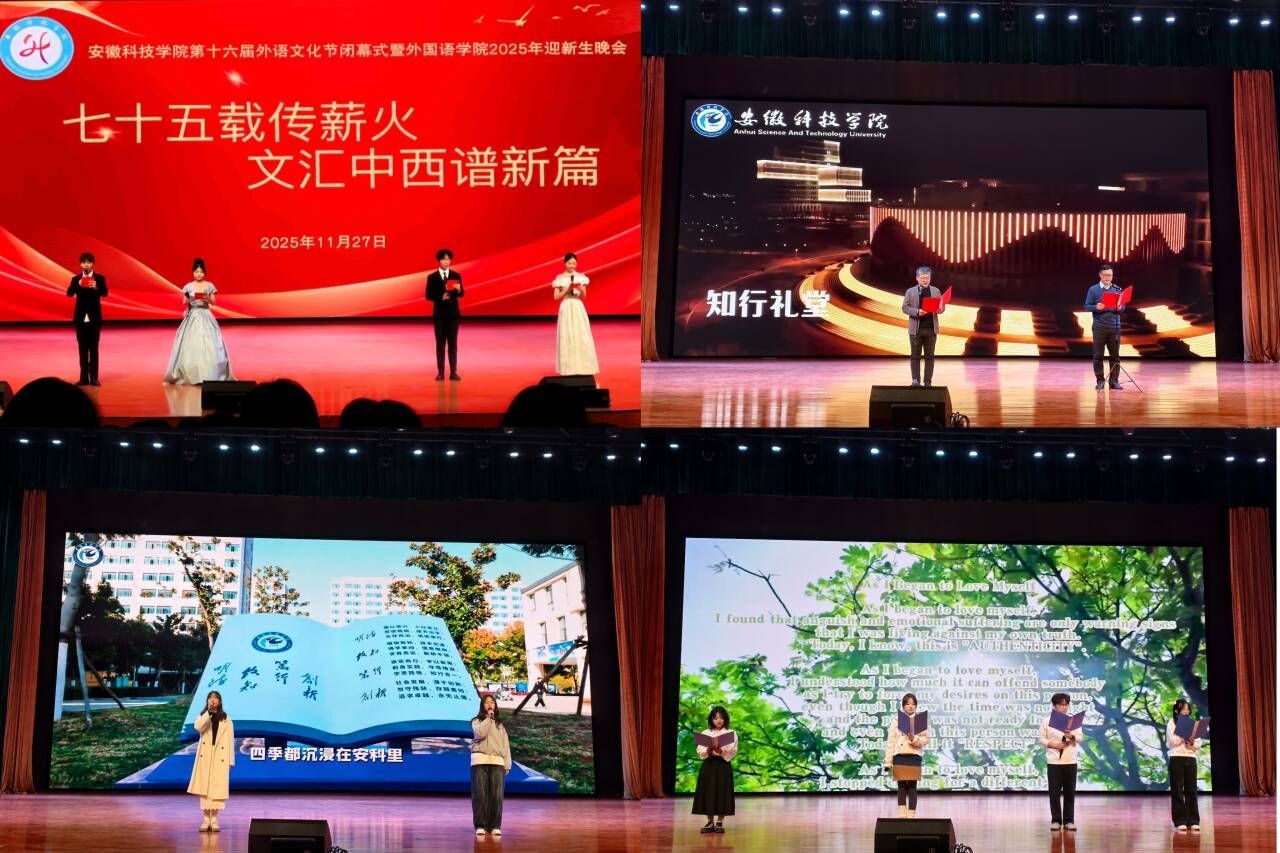 11月27日晚,开云线上官网_开云(中国)第十六届外语文化节闭幕式暨外国语学院2025年迎新生晚会在知行礼堂举行。外国语学院党政领导、辅导员以及全体在校生参加活动。