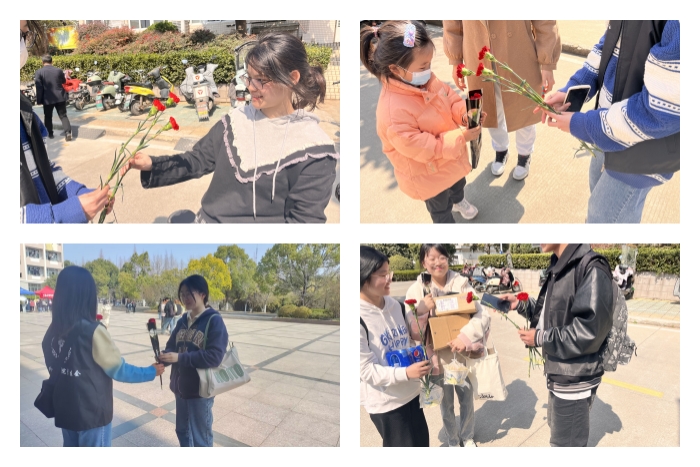 春日阳光正好,微风不燥,活动现场,风声,笑声,还有真诚的祝福声此起彼伏。学生会干部手捧鲜花,笑脸盈盈地为来往的女生发放鲜花并拍照留念,他们乐此不疲奔赴在校园,赠送祝福,传递温暖。一支支鲜花的递接是对女生独有节日的良好祝愿,一个个青春洋溢的笑容是独属于安科女生的浪漫,一声声问候是对最美青春时光的温情关怀。