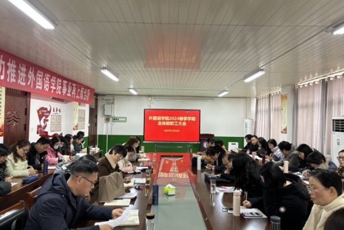 2月28日下午,外国语学院在学院会议室召开新学期期初全体教职工会议,学院党政领导及全体教师参加了会议,会议由院长刘萍主持。