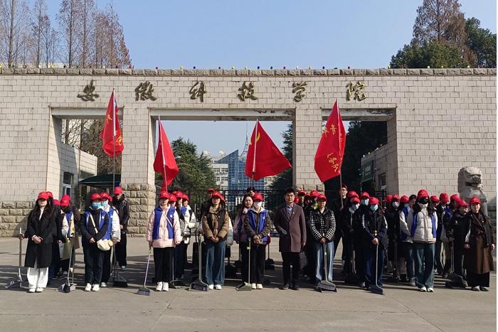 为加强大学生爱国主义教育,发扬志愿服务精神,3月13日下午,外国语学院翻译专业学生党支部、英语专业学生党支部师生党员、入党积极分子和2022-2023级团支部团员青年共80人在学院团委副书记宋兵兵带领下赴凤阳县烈士陵园开展“祭奠英烈,清扫陵园”主题活动。