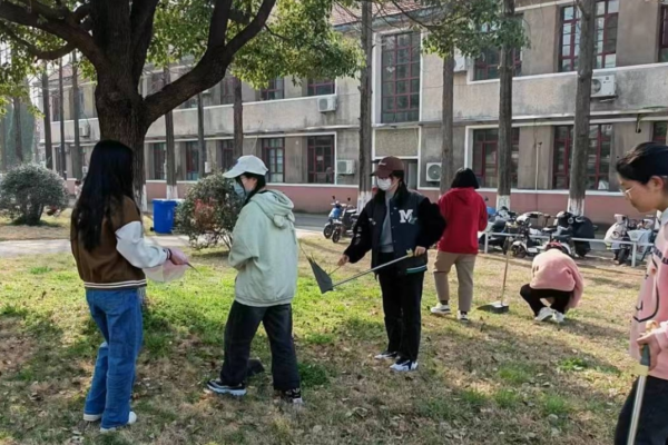 组织“爱国卫生运动”责任区清扫。5月12日至14日,翻译222、223两个班级开展了“文明校园,我来维护”劳动区清扫劳动实践。50余名学生,手持工具在图书馆前、办公楼后的广大区域,清理草坪的垃圾和杂物,劝诫来往行人的不文明行为,体会环卫工人的日常劳动。