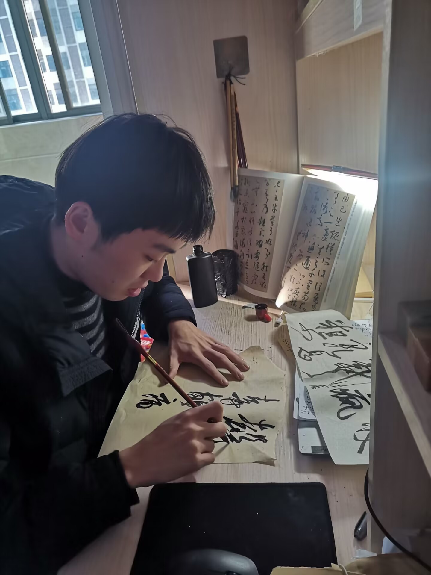 陶乐乐对学习充满热情,善于钻研,乐于将所学的知识融汇贯通并总结出一套自己的学习体系来丰富自己的学识境界。他具有丰富的想象力和创造力,在团队设计专利“数字化供水业务服务平台”的过程中,他提出了用“高斯曲线模型”和“数学方位视角”来解决其中一项有关客户体验感提升方法的问题。他曾以个人名义参加了“第二届安徽省大学生品牌创意设计大赛”A类赛事,并取得了省一等奖。他还十分痴迷于书法艺术,尤爱晋唐时期的潇洒书风。在任职“开云线上官网_开云(中国)书美协会副会长”期间,他举办了书法知识竞赛、书法创作分享大会、书法艺术展等多项活动,除此之外,他还计划申请加入中国书法协会。