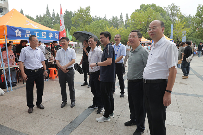 时隔三年新生家长首次陪着孩子进校报到,学校领导格外重视。校党委书记时伟,党委副书记、院长李震,党委委员、副院长黄远友,党委委员、副院长李升和,党委委员、副院长王孝义早早便来到各个院系和职能部门的迎新接待站,在有关单位(部门)主要负责人的陪同下,了解新生报到注册情况,慰问现场工作人员和志愿者。
