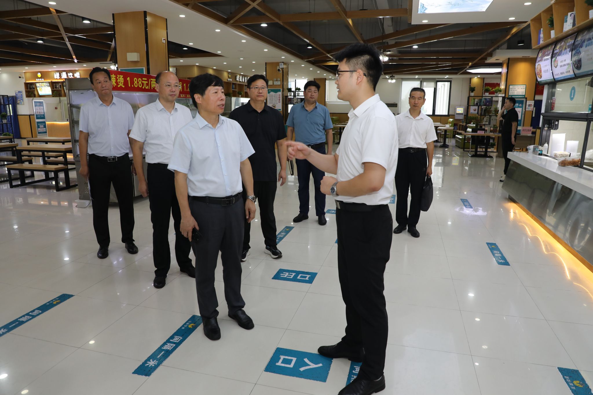 听课结束后,校领导先后深入食堂、学生宿舍、超市、学生“一站式”社区、图书馆、快递站、办公楼、实验室、校医院等师生学习、生活、服务保障重点场所检查,听取相关部门(单位)负责同志开学初工作及安全稳定工作情况的汇报,实地查看开学初各项工作情况,指出存在问题及整改要求,并与一线工作人员和师生亲切交谈。通过检查发现,各部门为新学期开学做了大量细致的准备工作,各项工作已经步入正轨,校园生活、学习、工作秩序井然。