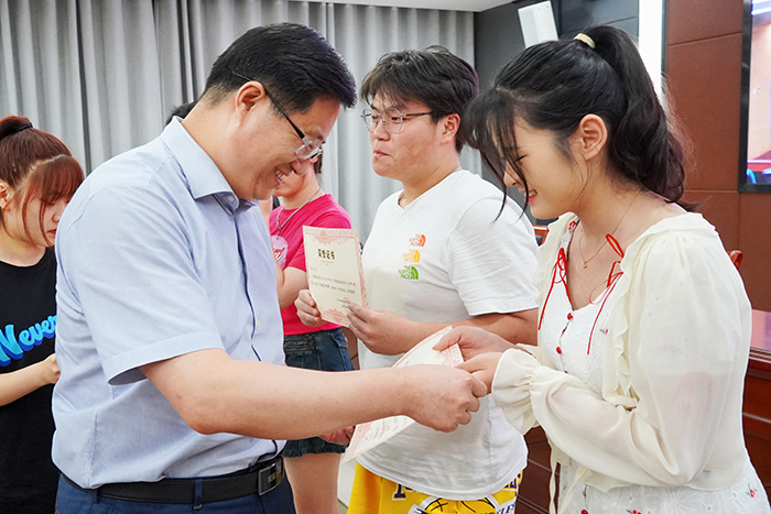 黄立义在讲话中对获得表彰的同学表示热烈祝贺,他指出,新媒体中心秉承“铁肩担道义,妙手著文章”的理念,开展了大量卓有成效的工作,取得较好的成绩,已成为学校宣传工作的重要组成部分。希望新媒体中心在今后的工作中,一要增强政治意识,站稳政治立场;二要增强学习意识,提升业务学习能力;三要增强责任意识,在宣传工作中注重细节问题,把责任扛在肩上抓在手上;四要强化精品意识,在宣传部老师的指导下,坚持目标导向,在工作当中多出精品,培养新的文化“品牌”,增强成就感和获得感;五要增强创新意识,追求创新,追求卓越,充满朝气,讲好我们的青春故事;六要增强联动意识,各个社团各个部门要团结协作,多开展相互交流的活动,相互支持,共同进步,把工作做得更好,更有影响力。